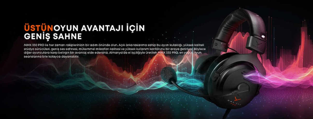 Beyerdynamic MMX 330 PRO, profesyonel stüdyo kulaklık teknolojisini gaming dünyasına taşıyan, açık tasarım yapısıyla son derece geniş ve gerçekçi ses sahnesi sunan üst segment oyuncu kulaklığıdır. Rekabetçi oyuncular, yayıncılar ve yüksek ses kalitesi arayan kullanıcılar için geliştirilen MMX 330 PRO, Alman mühendisliği, dayanıklı yapı ve üstün konforu bir araya getirir.